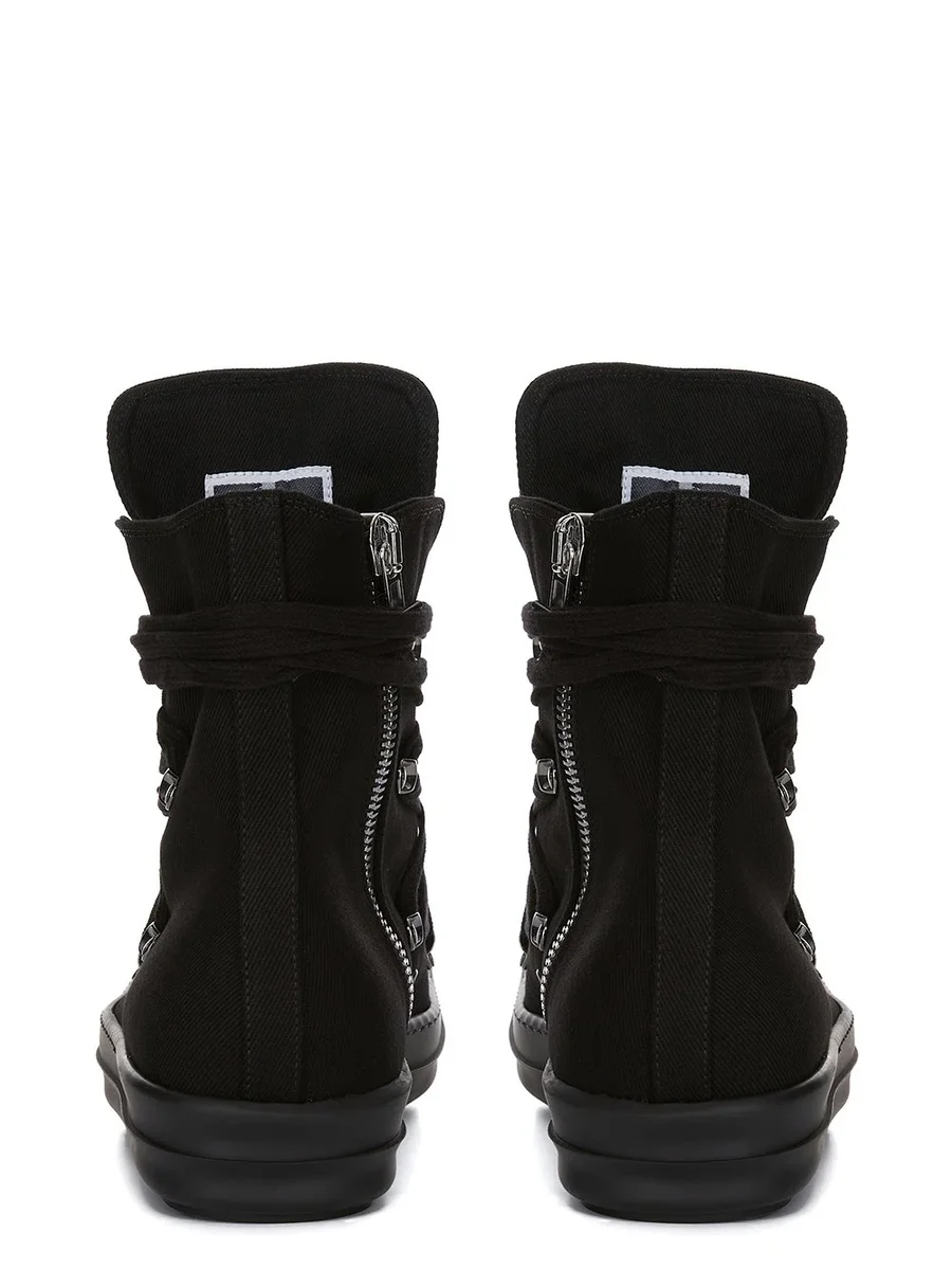 DRKSHDW FW25 CONCORDIANS MEGALACE® SNEAKS IN ZWART/ZWART/ZWART 13OZ OVERDYED DENIM