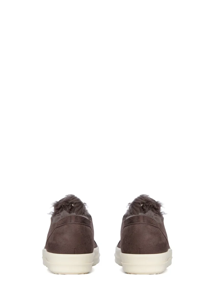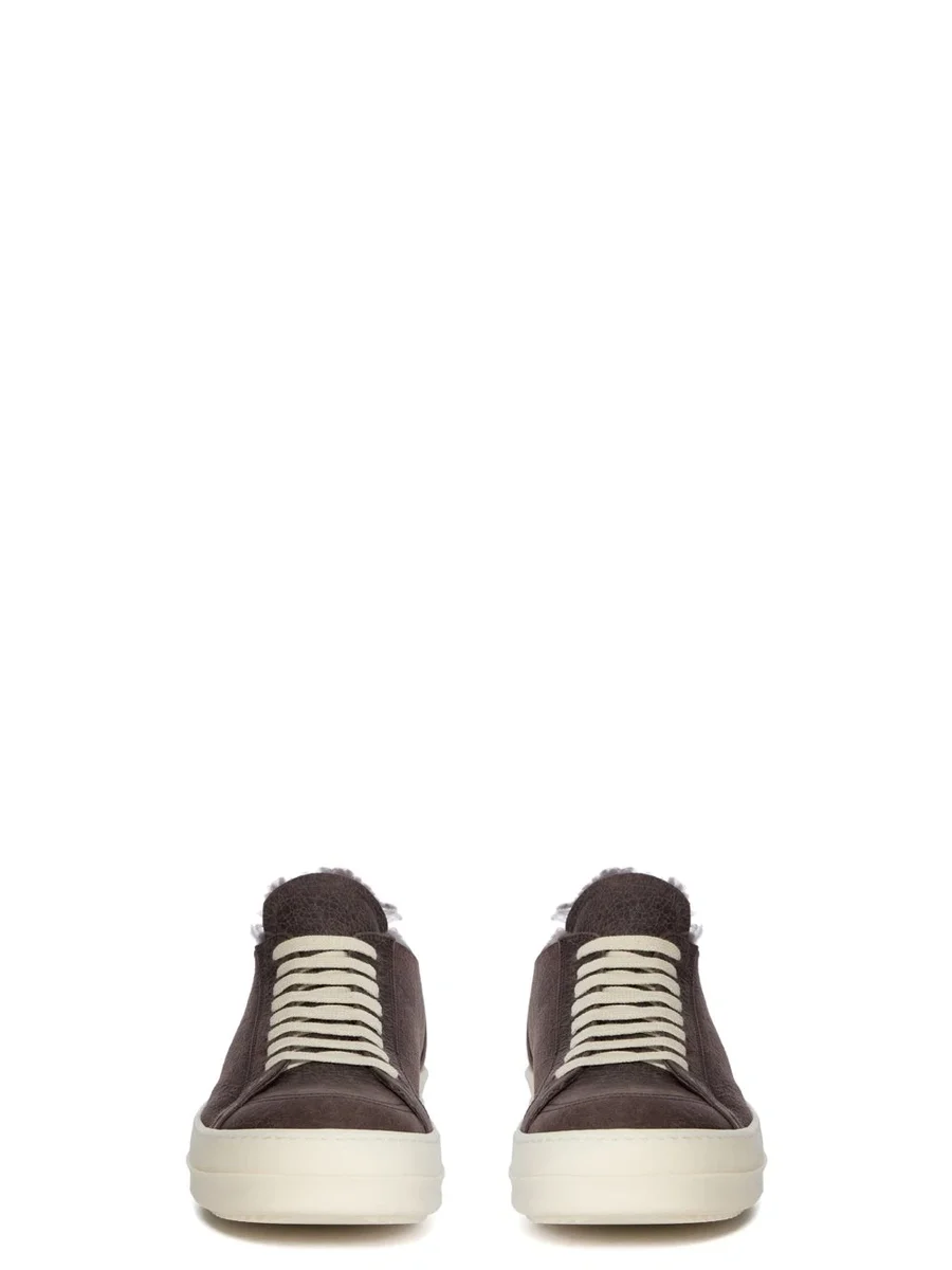 RICK OWENS FW25 CONCORDIANS MINIMAL VINTAGE SNEAKS IN DRKDUST/MILK CURLY SHEARLING