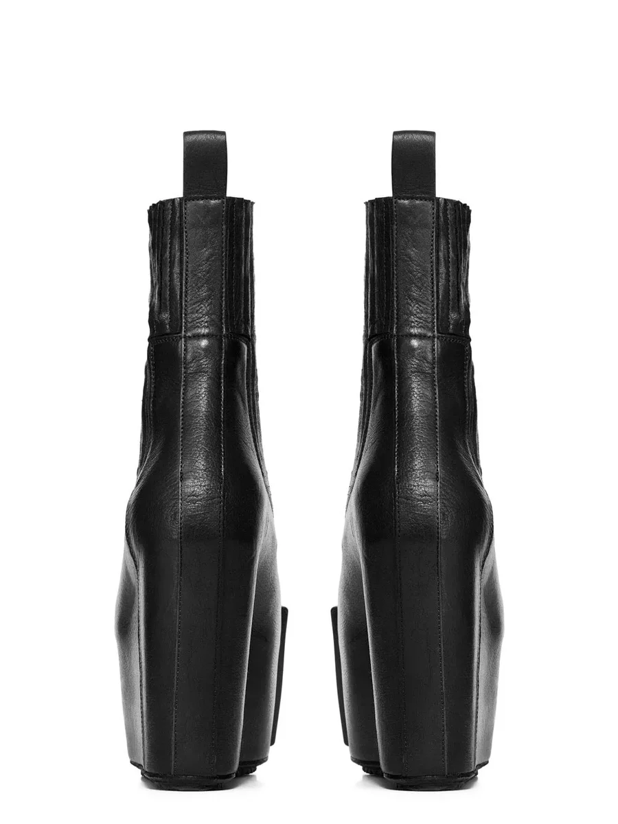 RICK OWENS FW25 CONCORDIANS GRILLED WEDGE BEATLE IN ZWART WAXY GEITENLEER