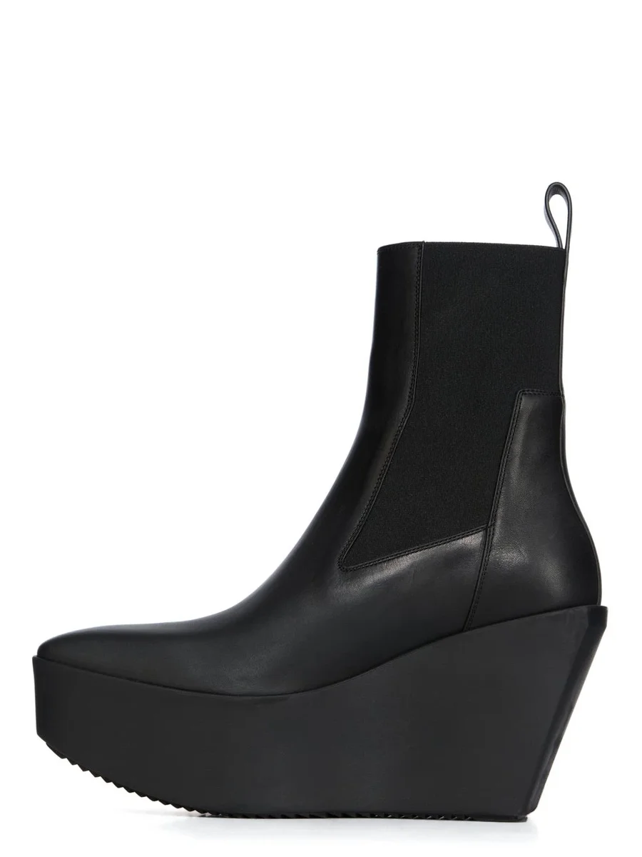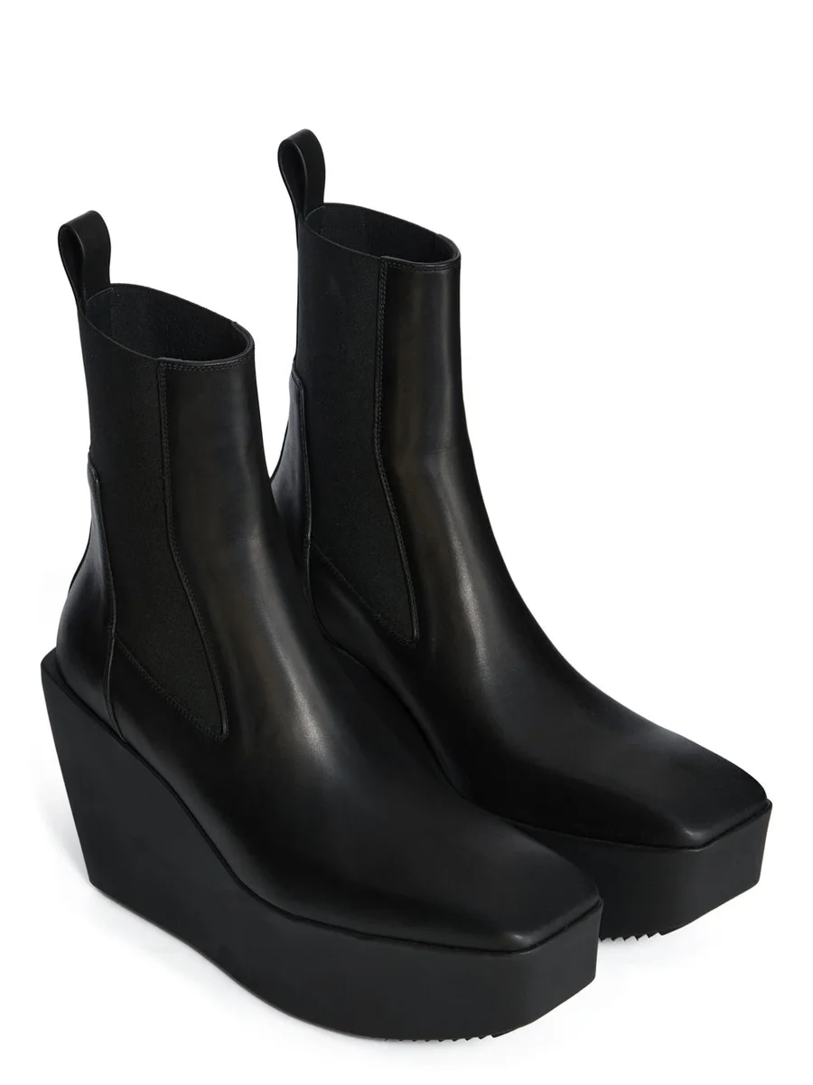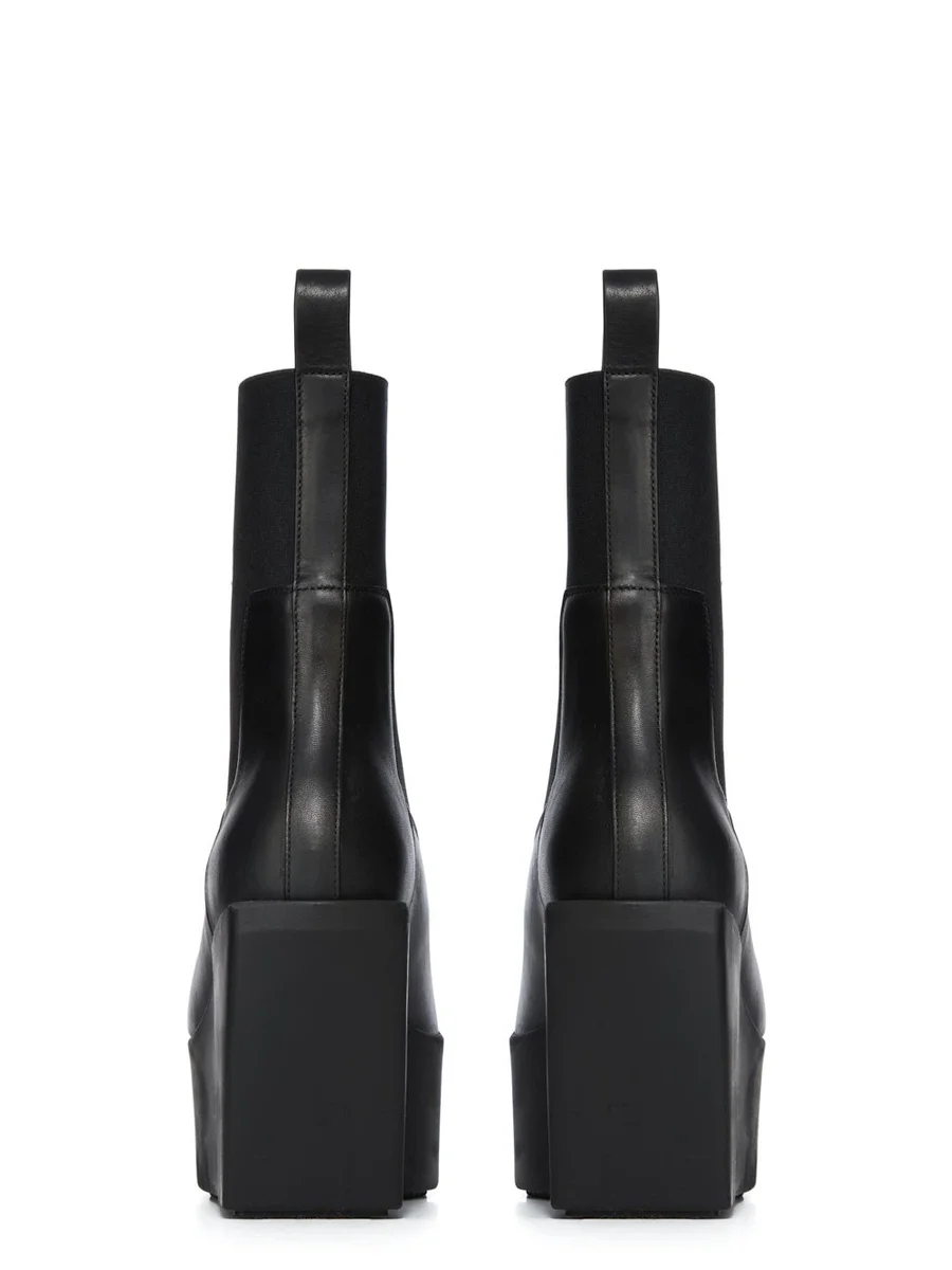 RICK OWENS FW25 CONCORDIANS SLIVER PLATFORM BEATLE IN ZWART GEWASSEN KALFSLEER