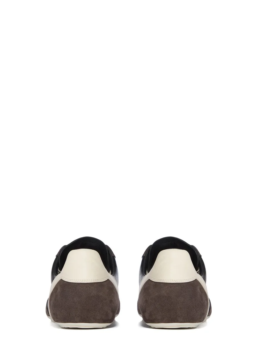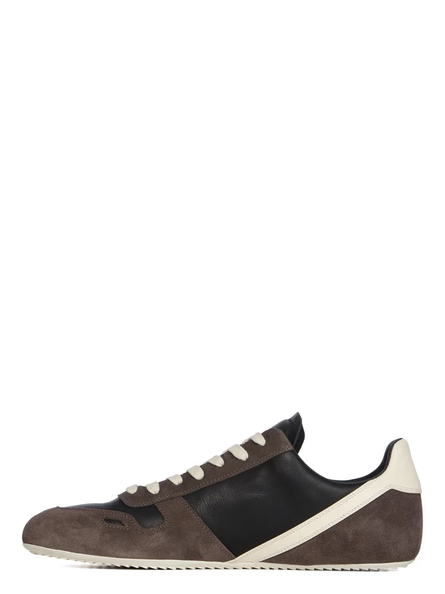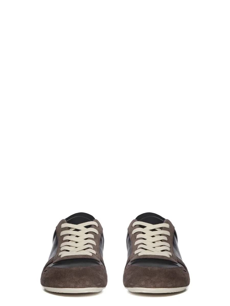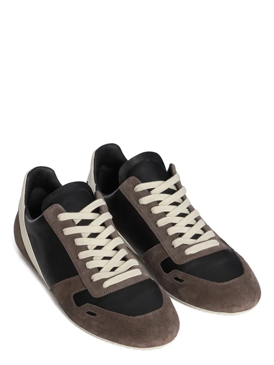 RICK OWENS FW25 CONCORDIANS MINIMAL SNEAK IN DRKDUST/BLACK/MILK/MELK SUÈDE LEER, GEWASSEN KALFSLEER EN VOLNERF RUNNER LEER