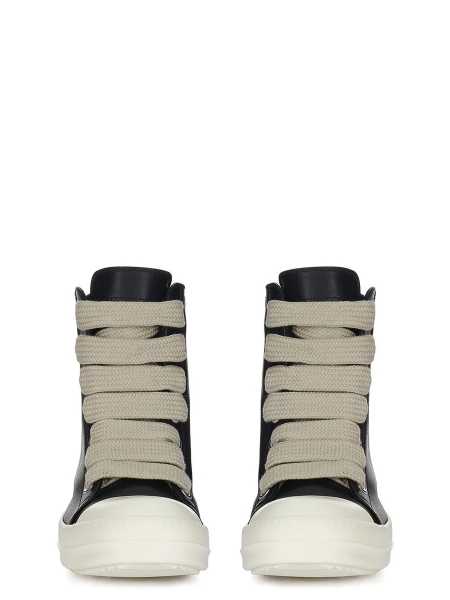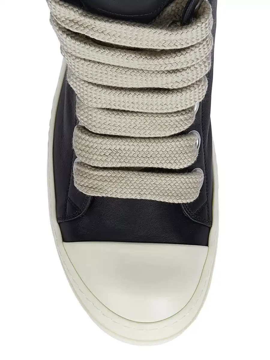 RICK OWENS FW25 CONCORDIANS JUMBOLACE SNEAKERS IN ZWART/MELK/MELK VOLNERF RUNDERLEER