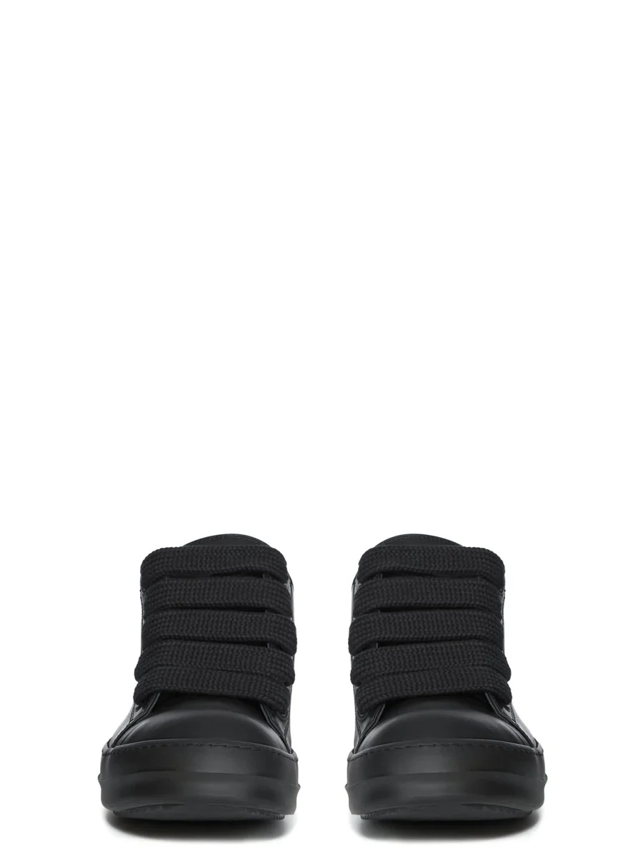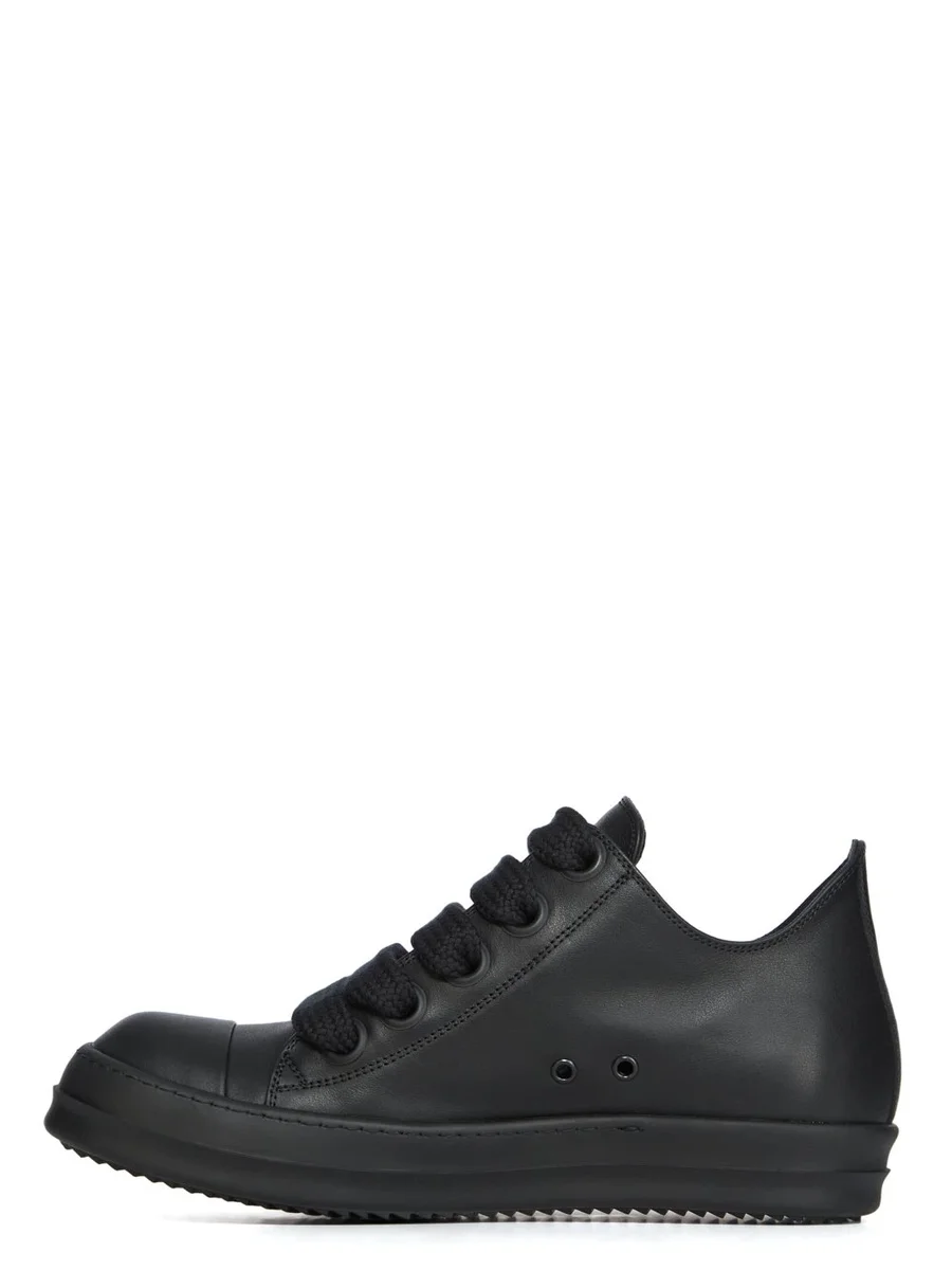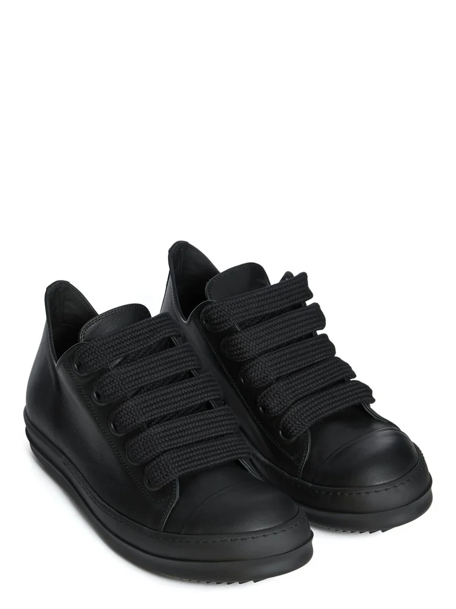 RICK OWENS FW25 CONCORDIANS JUMBOLACE LAGE SNEAKERS IN VOLLEDIG ZWART VOLNERF RUNDERLEER