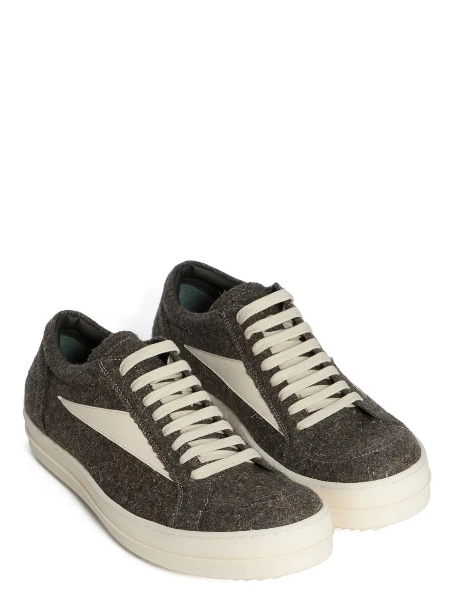 RICK OWENS FW25 CONCORDIANS VINTAGE SNEAKS IN BOSCO/MILK/MILK RUWE WOL EN SUÈDE