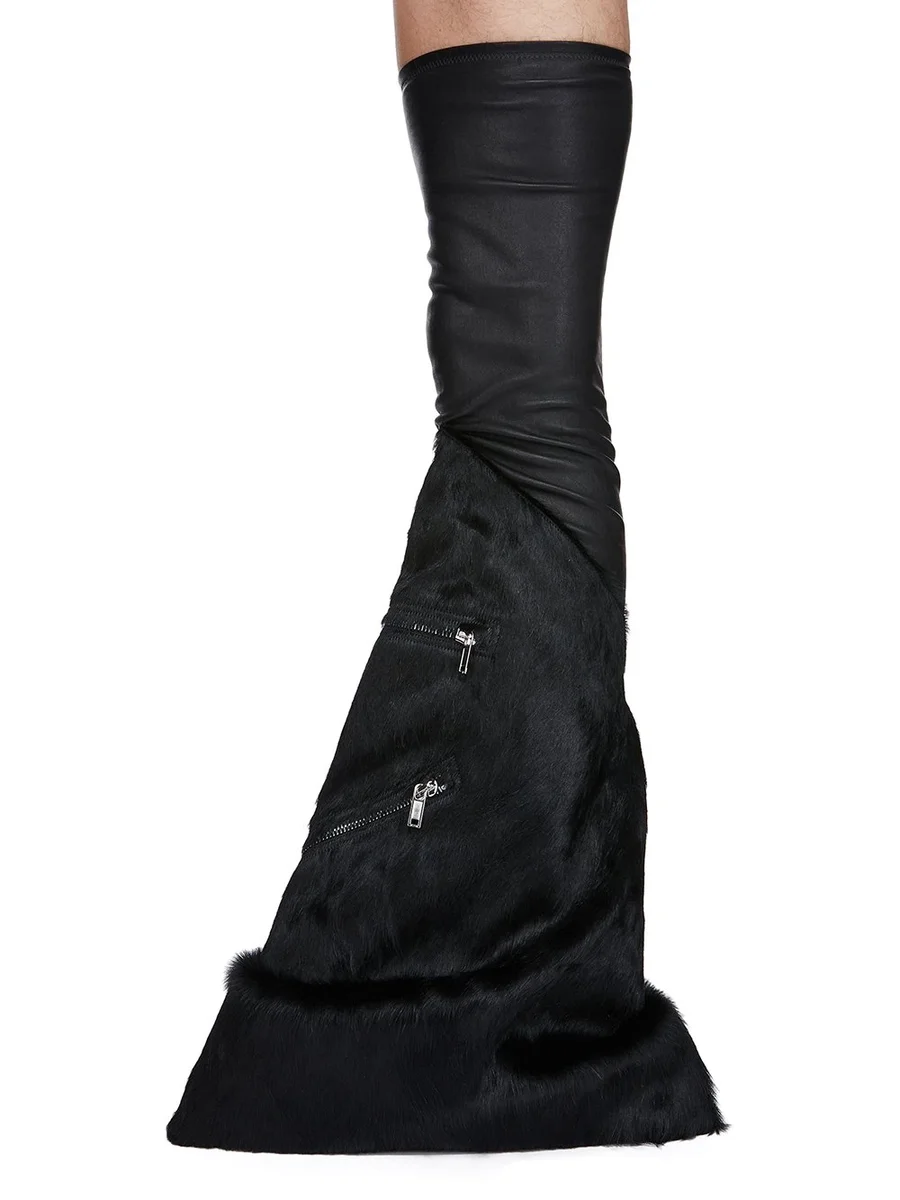 DEZE CARGO FETISH SNEAKS ZIJN BOVEN DE KNIEHOOG EN HEBBEN EEN STRETCHLEER BOVENKANT. ZE HEBBEN EEN LAARZENVORMIGE BOVENKANT MET EEN EXTRA LAAG DIE VAN EEN ASYMMETRISCHE NAADLIJN VALT EN DE VLOER SCHAAIT. ZE HEBBEN TWEE RITSEN AAN DE VOORKANT, EEN HORIZONTALE EN EEN SCHUINE. ZE HEBBEN MELKNEEUWS EN ZOLEN MET HAAIENTANDEN.