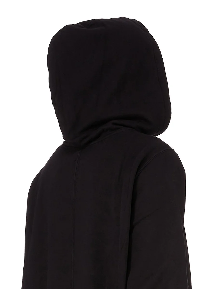 DEZE OVERSIZED HOODIE IS HEUPLENGTE, HEEFT EEN LOSSE PASVORM EN LANGE MOUWEN. HIJ HEEFT EEN CAPUCHON MET TREKKOORD, GERIBBDE MANCHETTEN EN EEN TAILLEBAND. HIJ HEEFT DE KENMERKENDE SCHOUDERNADEN EN EEN ENKELE NAAD DIE OVER HET MIDDEN VAN DE ACHTERKANT LOOPT.