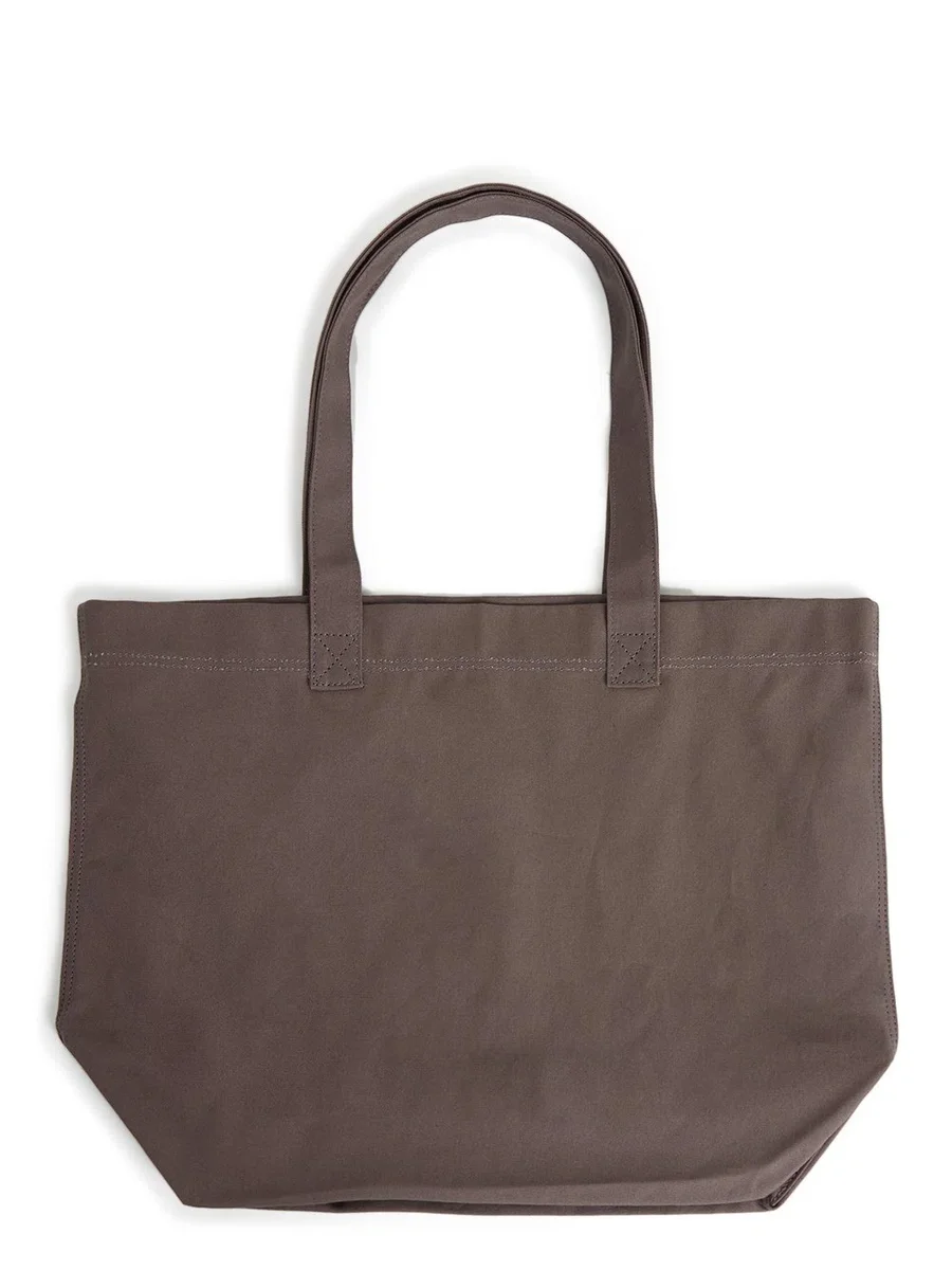 DEZE CONVERSE X DRKSHDW TOTE BAG VAN 100% KATOENEN CANVAS HEEFT EEN HORIZONTALE RECHTHOEKIGE VORM MET EEN PLATTE BODEM EN TWEE HANDGREPEN BOVENAAN.