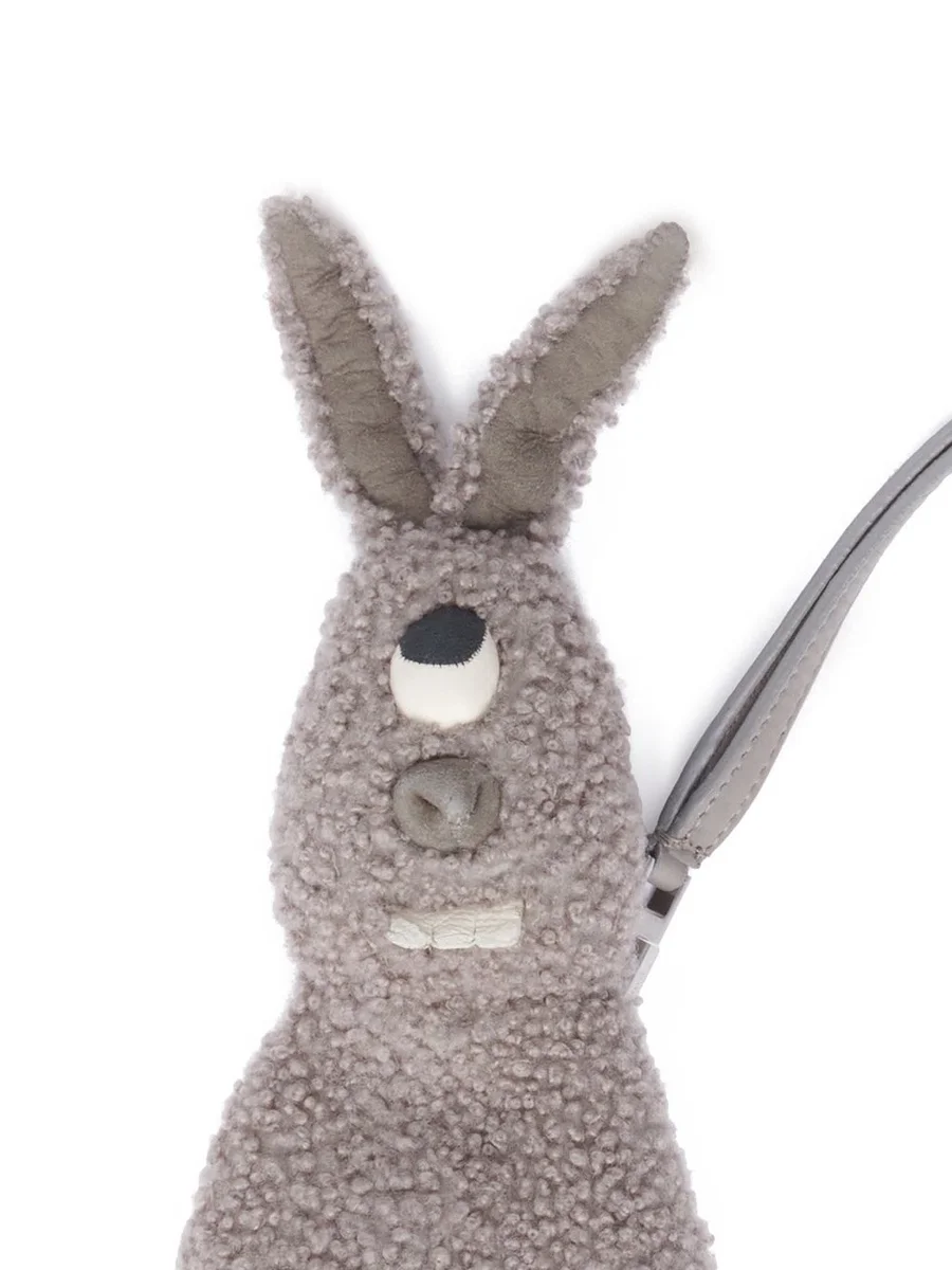 DIT SIAMESSE KONIJN HEEFT TWEE KOPPEN MET ÉÉN OOG, ÉÉN NEUS, TWEE TANDEN, LANGE OREN, ÉÉN POOT EN GEEN ARMEN, EN EEN GEHEIM ZAKJE OP DE ACHTERKANT DAT ALS KLEIN TASJE KAN WORDEN GEBRUIKT.