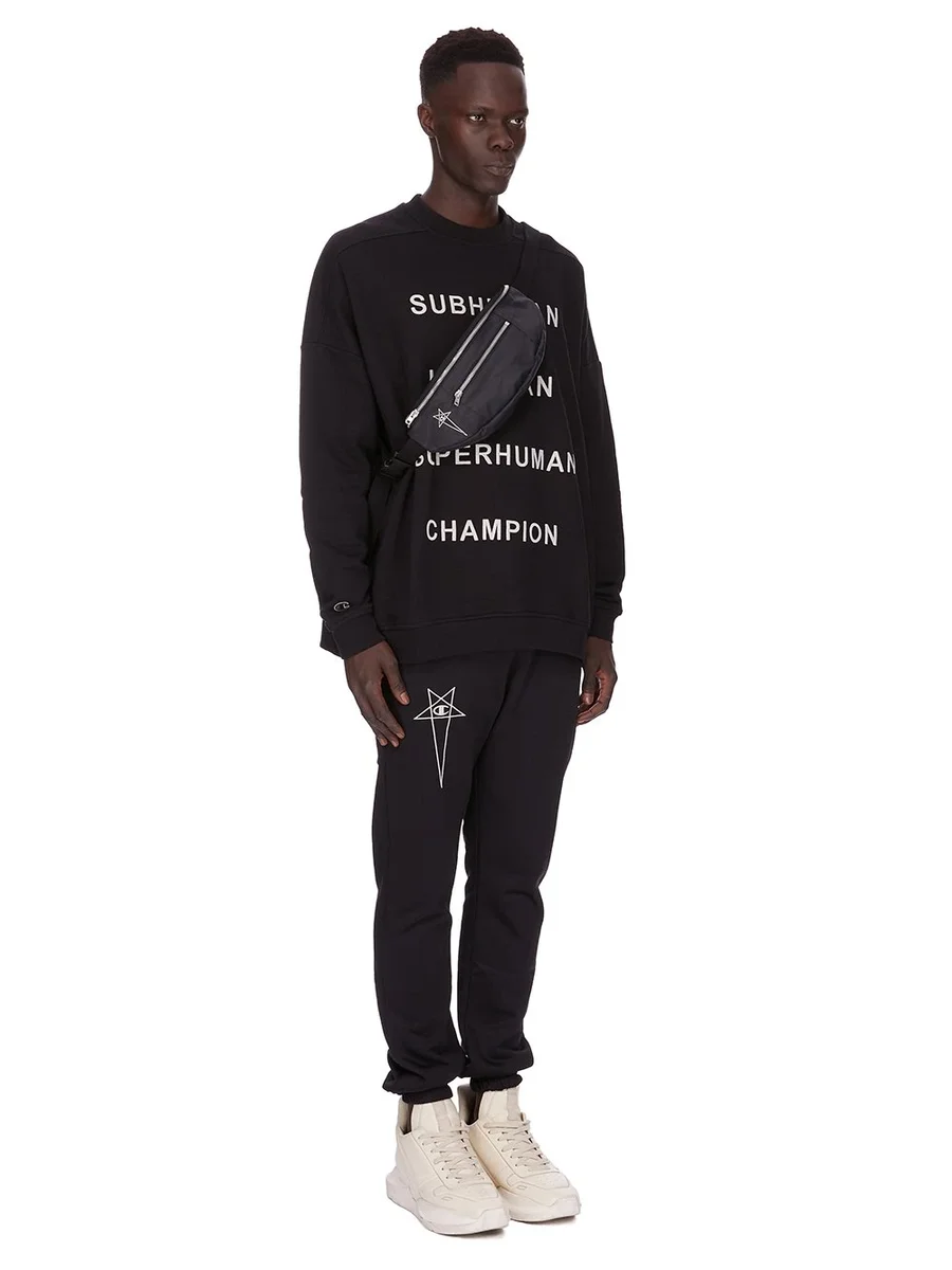 HET IS VOORZIEN VAN EEN KLEINE 3D CHAMPION X RICK OWENS PENTAGRAM LOGO PATCH OP DE RECHTERKANT.