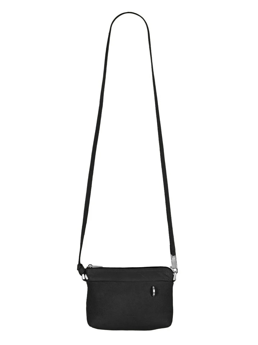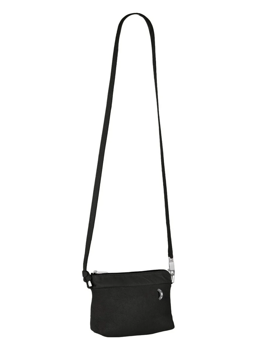DEZE SMALL ADRI IS EEN RECHTHOEKIGE TAS MET EEN RITSSLUITING BOVENAAN, EEN PONTICELLO D-LUS EN EEN LANGE, DUNNE, VERSTELBARE LEDEREN BAND, MET KLEINE PALLADIUM TONIGE MESSING KARABIJNHAKEN EN D-RINGEN.