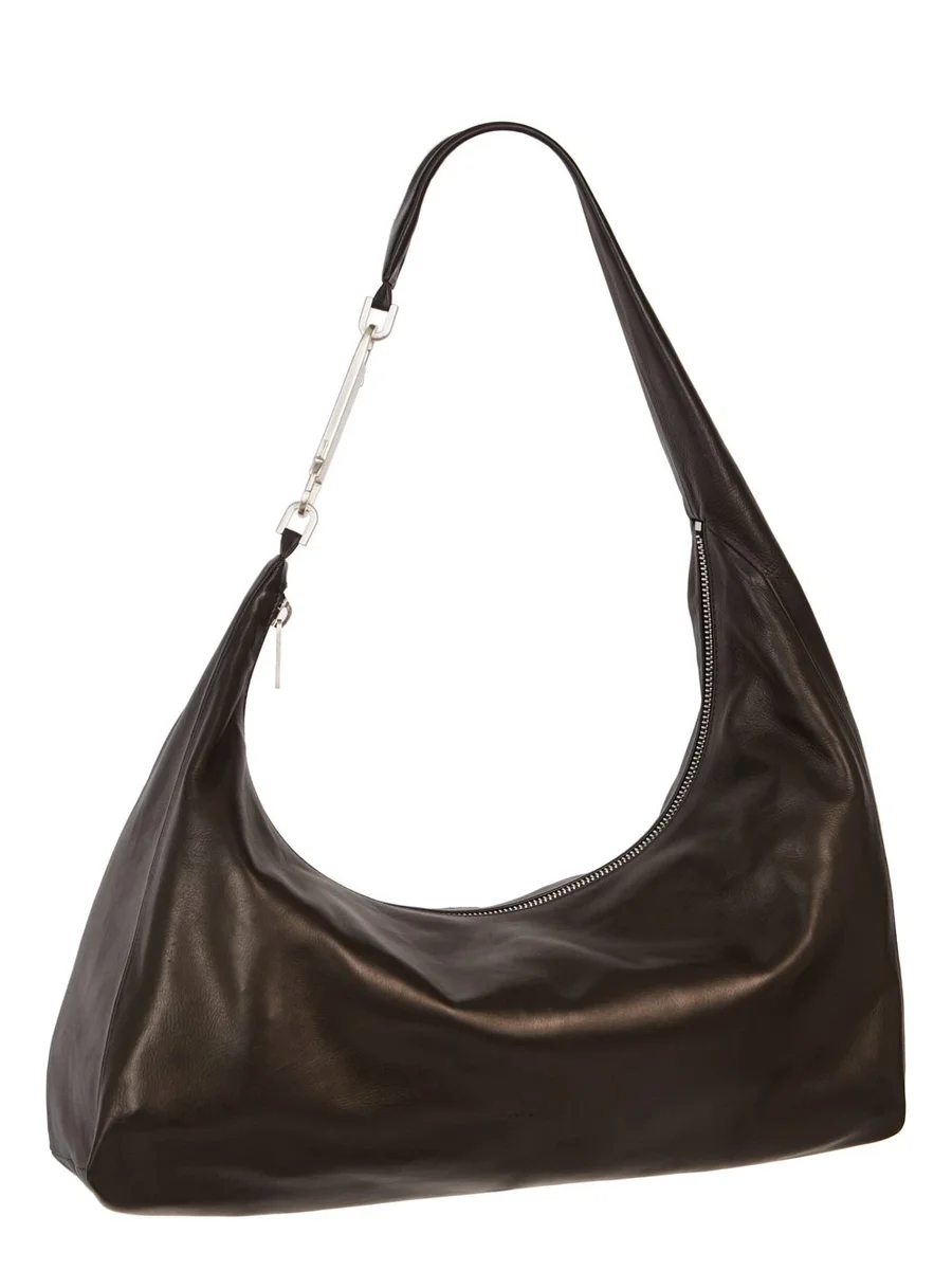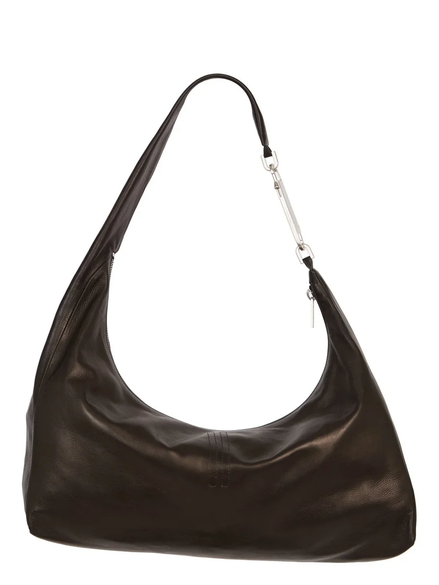 DEZE GEMINI CROPPED TAS IS EEN KLEINERE VERSIE VAN ONZE GROTE GEMINI TAS. HET IS EEN ZACHTE A-VORMIGE TAS DIE IN HET MIDDEN SLOFT. DEZE DRAAIT OM EEN BAND TE VORMEN DIE WORDT VASTGEZET MET EEN GEMINI DUBBELZIJDIGE KARABIJNHAAK MET HET RICK OWENS LOGO. DE TAS GAAT OPEN MET EEN BOVENRITS, HEEFT EEN BINNENZAK EN EEN PLATTE ZAK MET KENMERKENDE U-VORMIGE STIKDETAILS DIE ZICHTBAAR ZIJN OP DE ACHTERKANT.