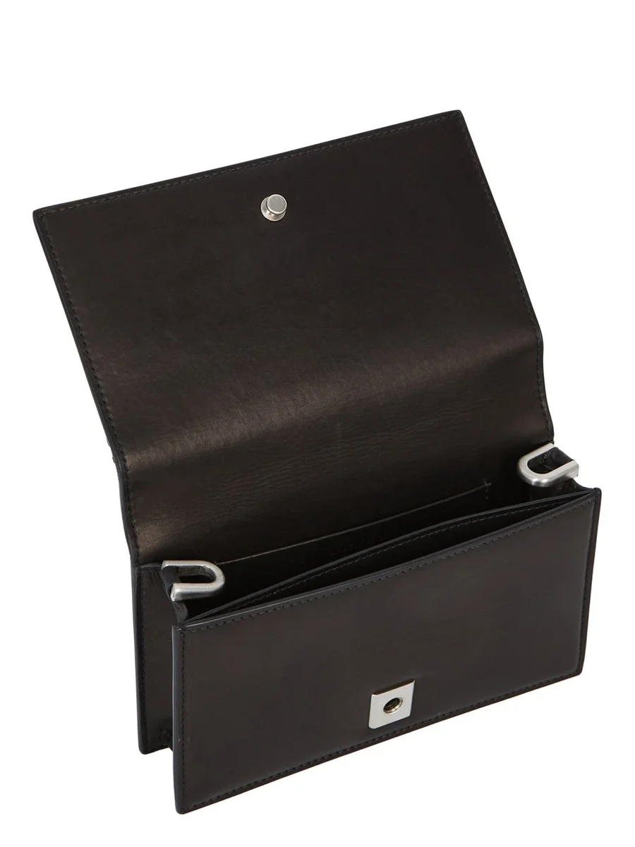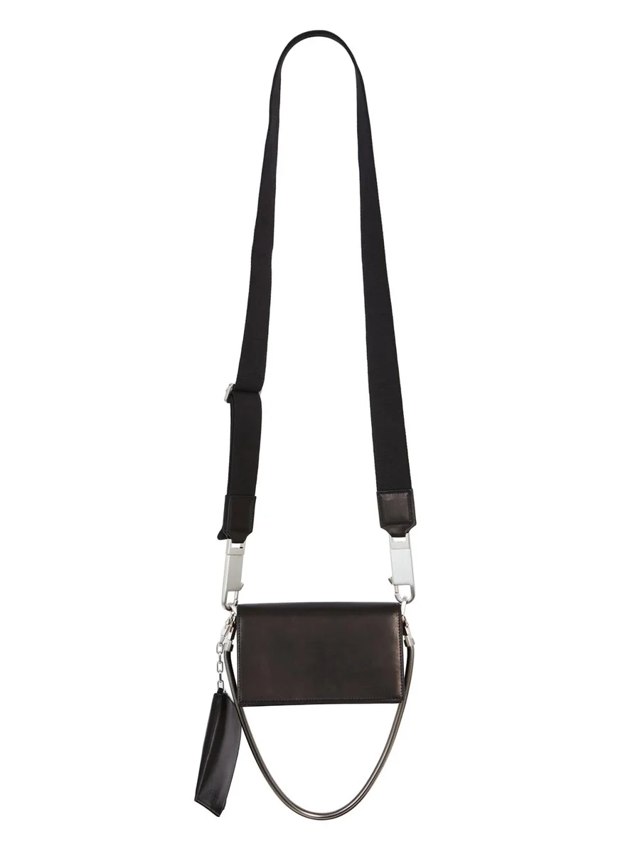 DEZE MINI GRIFFIN IS EEN MINI-FORMAAT RECHTHOEKIGE TAS MET EEN VOORKLEP EN EEN PALLADIUM INGEDRUKT, GEMAKKELIJK TE VERGRENDELEN AFGESCHUINDE, MAGNETISCHE SLUITING. DE TAS HEEFT EEN PONTICELLO D-LUS AAN DE VOORKANT, EEN BINNENVAK MET 9 KAARTVAKKEN EN EEN TWEEDE BINNENVAK MET RITSSLUITING. DE TAS IS VOORZIEN VAN EEN VERSTELBARE KATOENEN BAND EN EEN SLANGKETTINGBAND, ELK MET TWEE HAKEN VAN PALLADIUMKLEURIGE MESSING. DE BANDEN KUNNEN WORDEN AFGEMAAKT OM EEN CLUTCH TE CREËREN.
