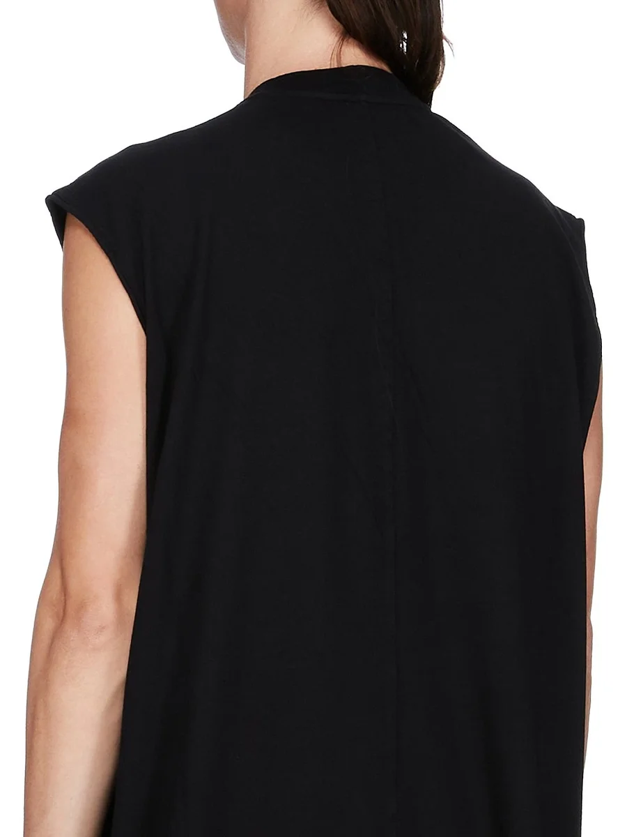 DEZE TARP T-SHIRT IS LANG TOT ONDER DE HEUP EN HEEFT EEN LOSSE PASVORM. MOUWLOOS, MET BREDE SCHOUDERS EN EEN GERIBBDE RONDE HALS. DEZE HEEFT KENMERKENDE SCHOUDERNADEN AAN DE VOORKANT EN EEN ENKELE NAAD DIE OVER HET MIDDEN VAN DE ACHTERKANT LOOPT.