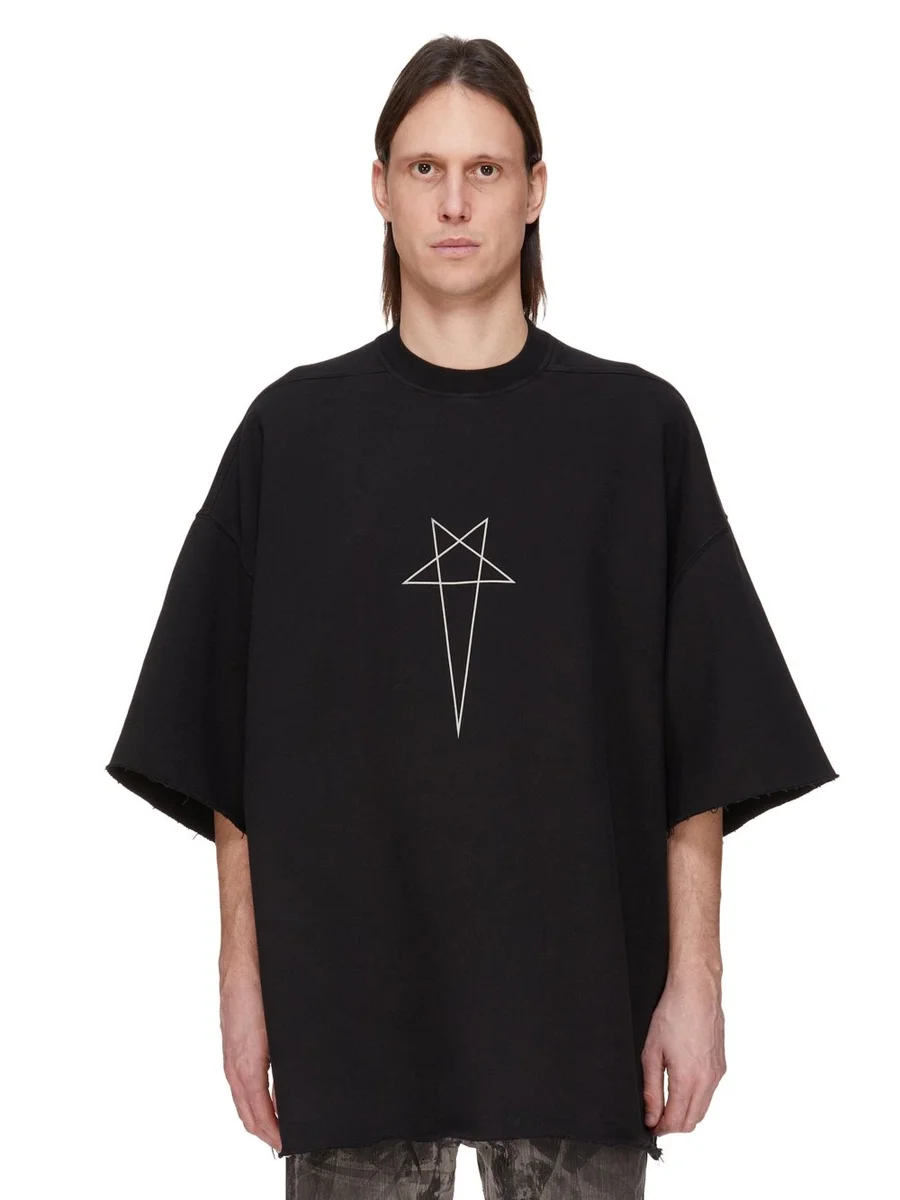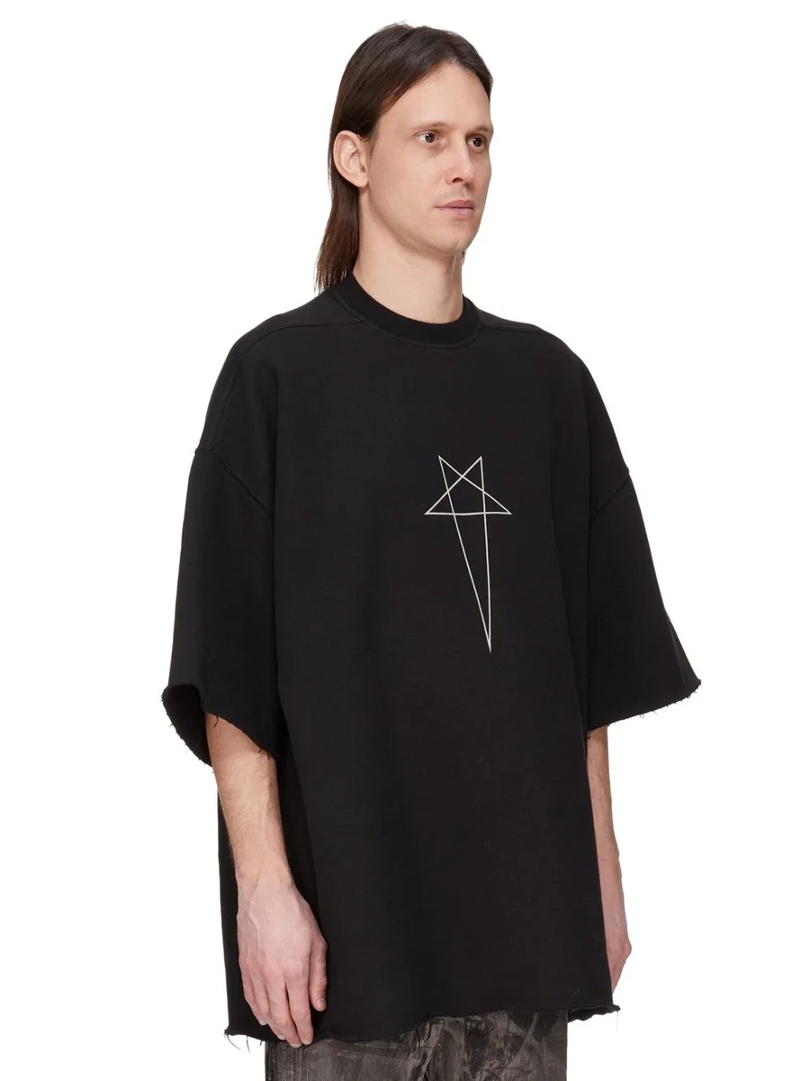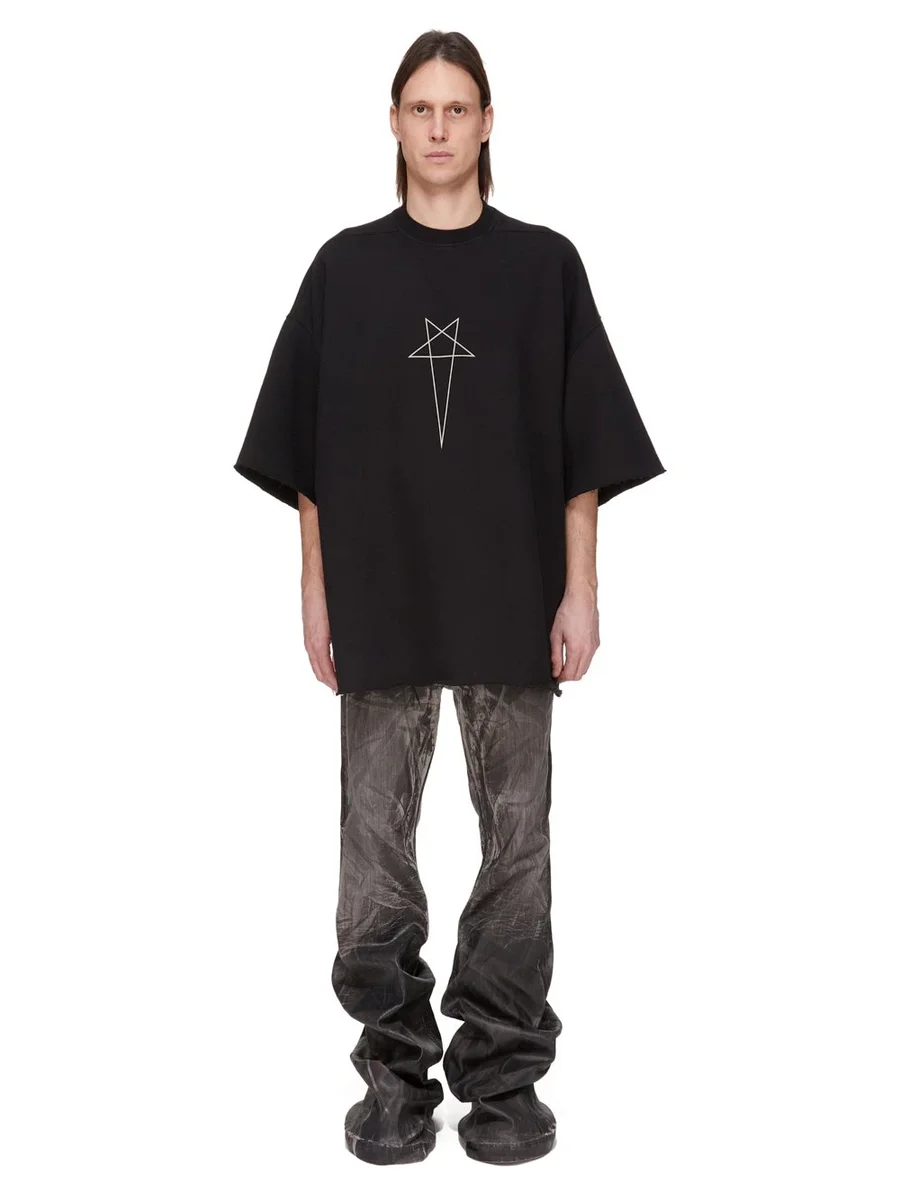 DEZE TOMMY T-SHIRT IS ONDER DE HEUP EN HEEFT EEN JUMBO OVERSIZED PASVORM. DEZE HEEFT WIJDE, KORTE MOUWEN MET EEN VERLAAGD ARMSGAT EN EEN GERIBBDE RONDE HALS. DEZE HEEFT KENMERKENDE SCHOUDERNADEN AAN DE VOORKANT EN EEN NAAD IN HET MIDDEN VAN DE ACHTERKANT.