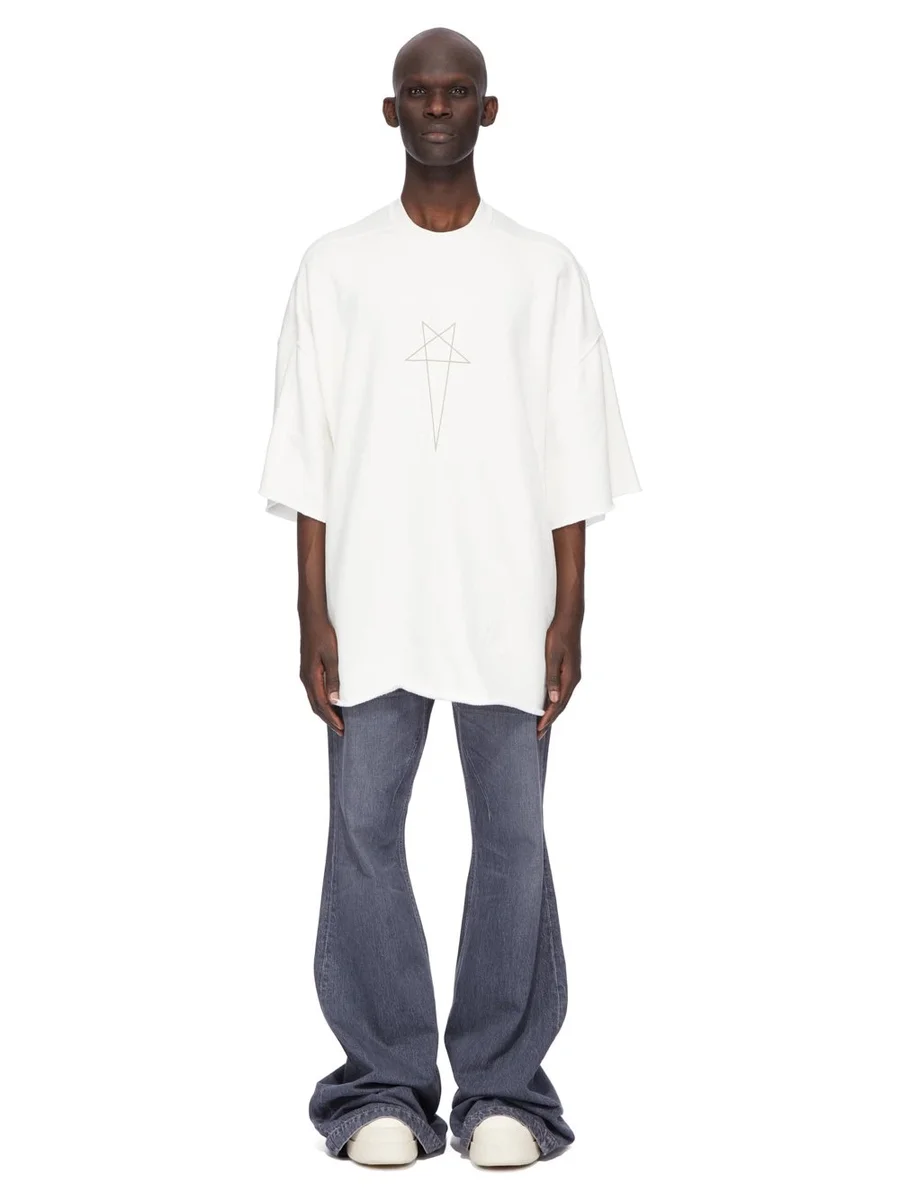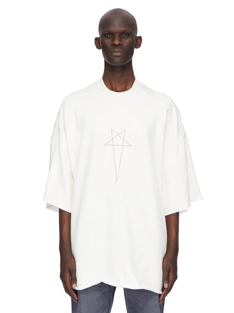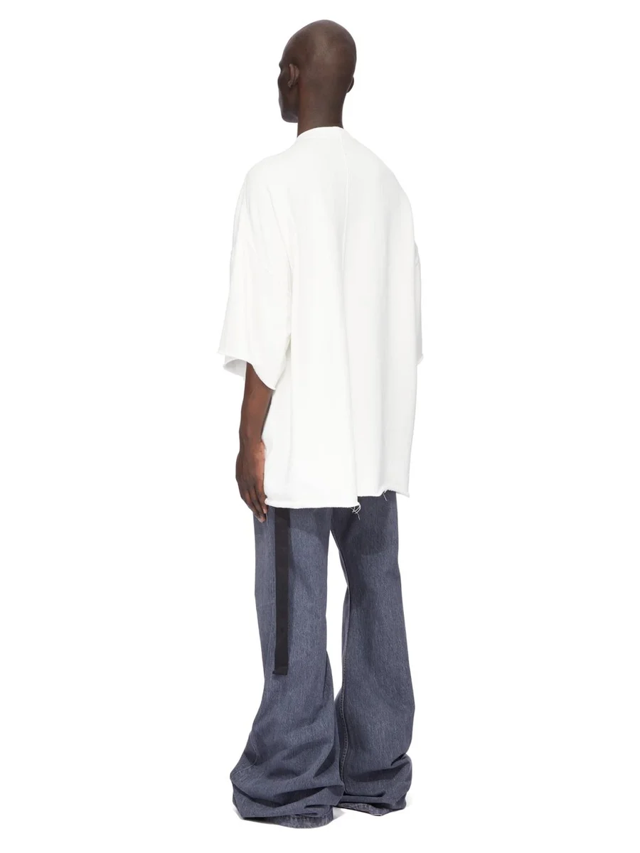 DEZE TOMMY T-SHIRT IS ONDER DE HEUP EN HEEFT EEN JUMBO OVERSIZED PASVORM. DEZE HEEFT WIJDE, KORTE MOUWEN MET EEN VERLAAGD ARMSGAT EN EEN GERIBBDE RONDE HALS. DEZE HEEFT KENMERKENDE SCHOUDERNADEN AAN DE VOORKANT EN EEN NAAD IN HET MIDDEN VAN DE ACHTERKANT.