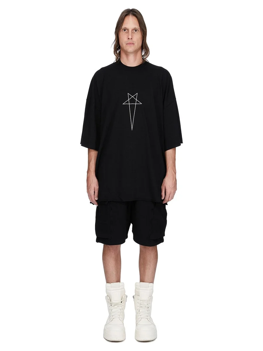 DEZE TOMMY T-SHIRT IS ONDER DE HEUP EN HEEFT EEN JUMBO OVERSIZED PASVORM. DEZE HEEFT WIJDE, KORTE MOUWEN MET EEN VERLAAGD ARMSGAT EN EEN GERIBBDE RONDE HALS. DEZE HEEFT KENMERKENDE SCHOUDERNADEN AAN DE VOORKANT EN EEN NAAD IN HET MIDDEN VAN DE ACHTERKANT.