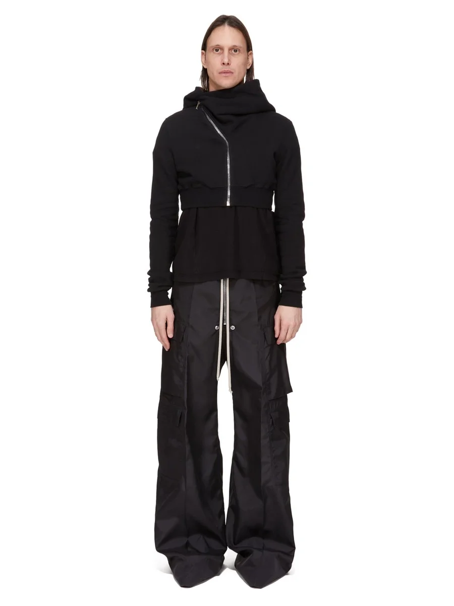 DEZE MICRO MOUNTAIN HOODIE HEEFT EEN LANGE LENGTE BOVEN DE TAILLE EN LANGE MOUWEN. HIJ HEEFT EEN GEBOGEN ASYMMETRISCHE RITSSLUITING, EEN KLEINE OPSTAANDE HALS EN EEN GROTE PUNTIGE CAPUCHON. HIJ HEEFT GERIBD MANCHETTEN EN EEN KENMERKENDE ENKELE NAAD IN DE TAILLEBAND DIE OVER HET MIDDEN VAN DE ACHTERKANT LOOPT.