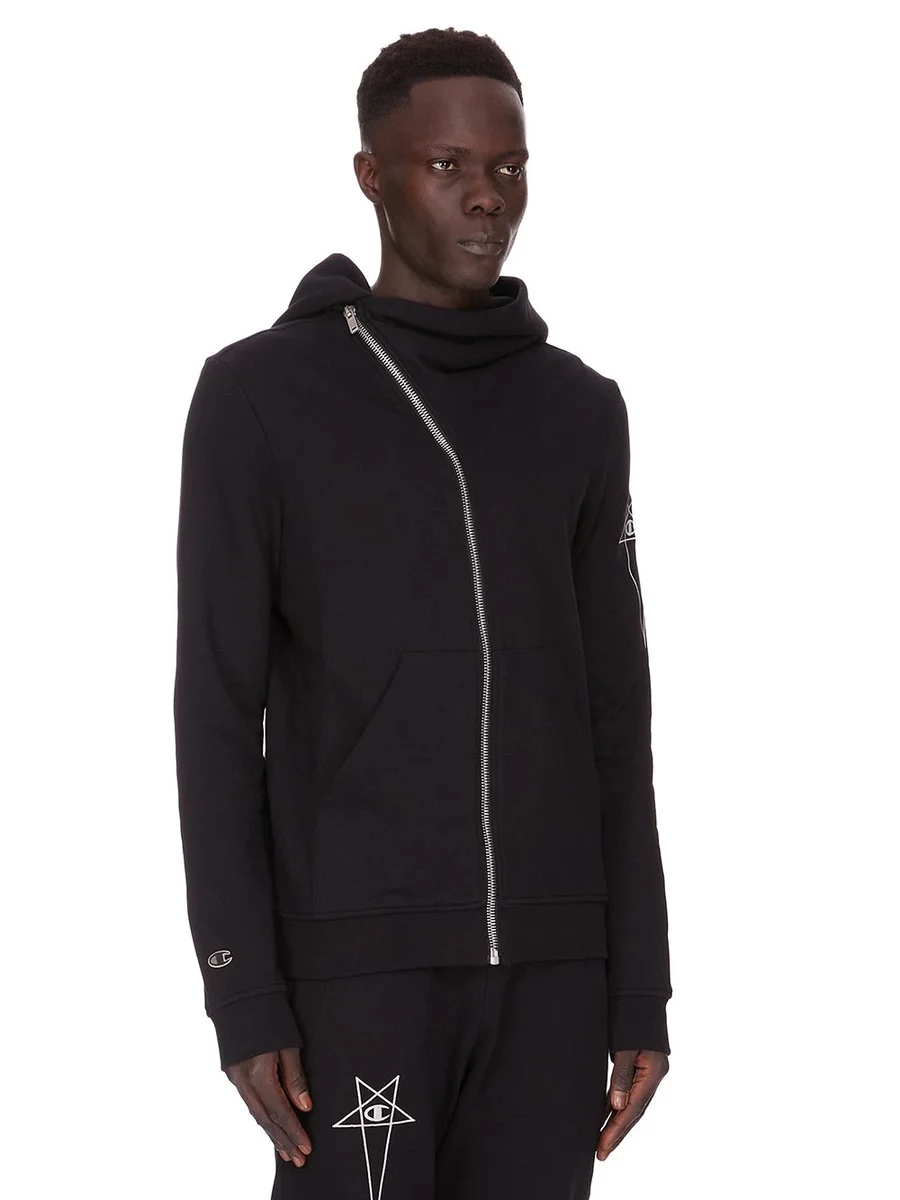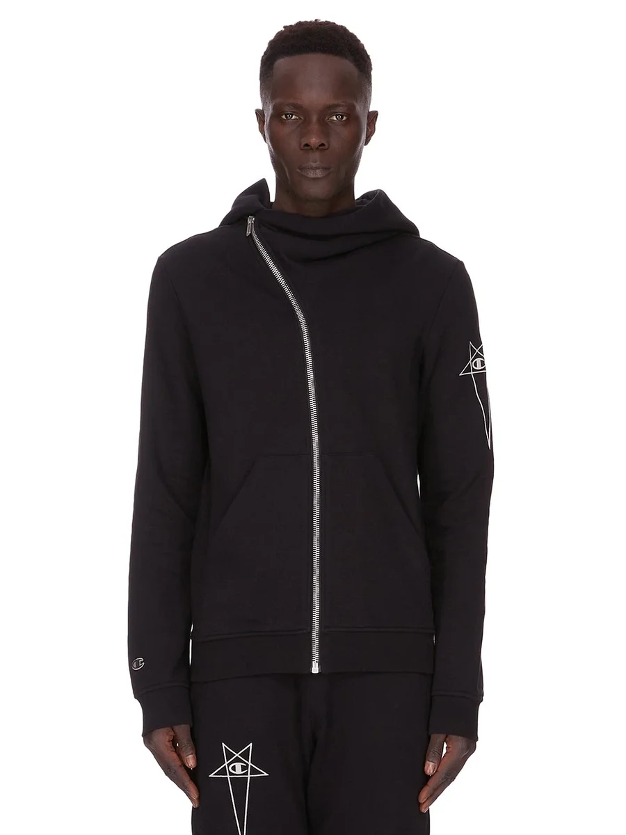 CHAMPION X RICK OWENS SS25 MOUNTAIN HOODIE IN ZWARTCOMPACT FELPA JERSEY