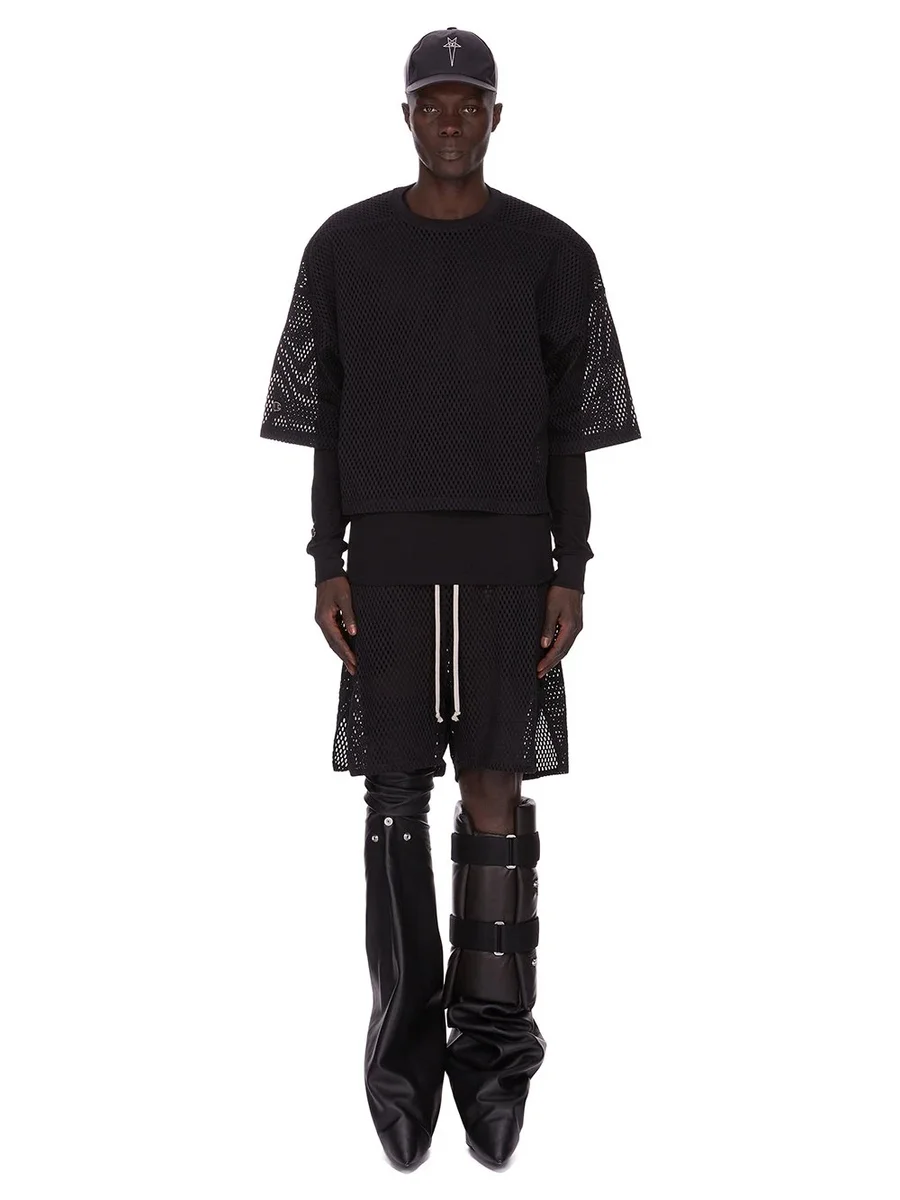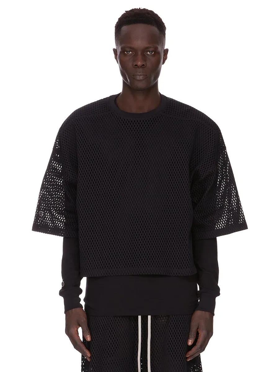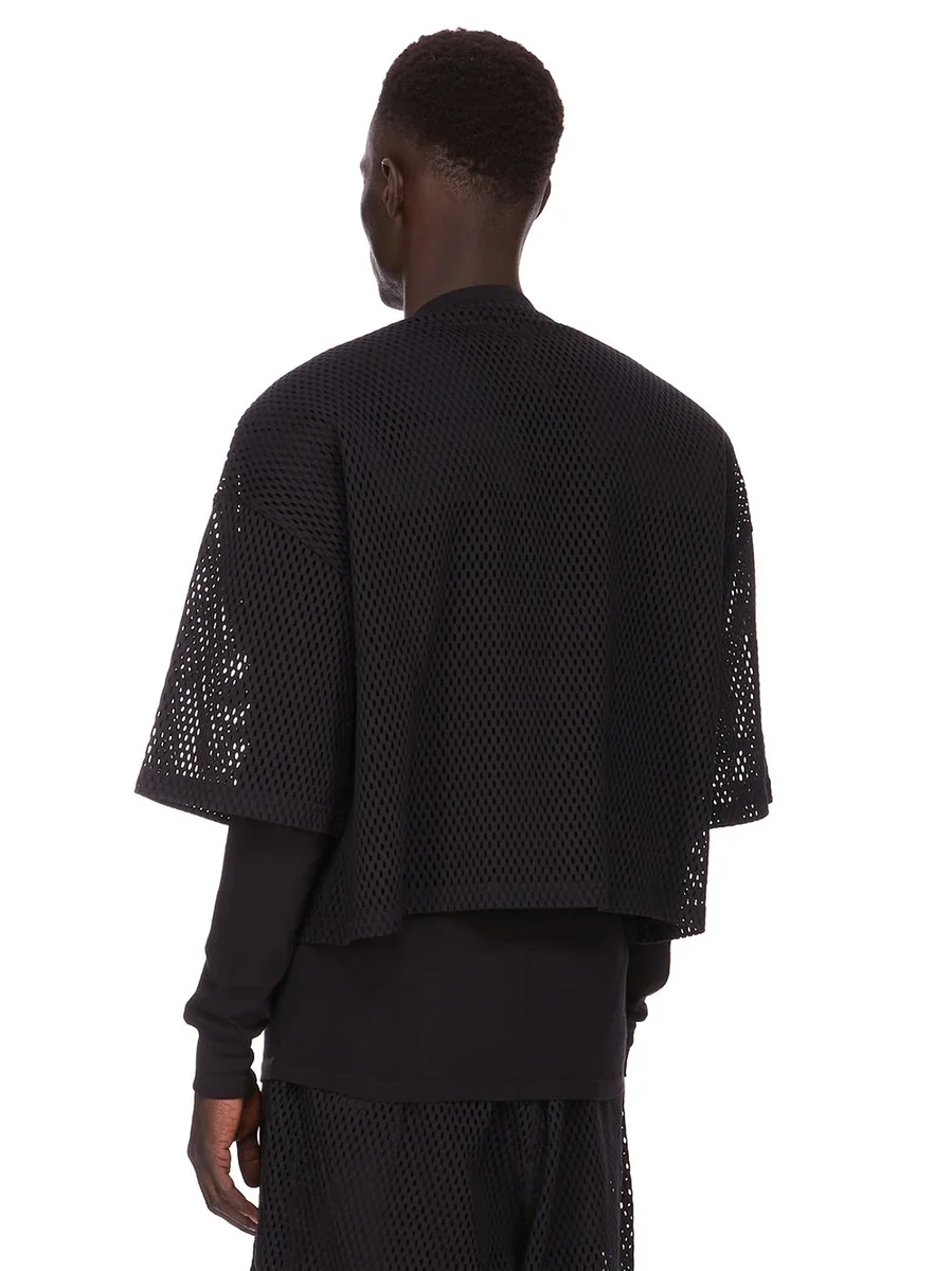 CHAMPION X RICK OWENS SS25 TOMMY T CROPPED IN ZWARTE OPEN MESH JERSEY