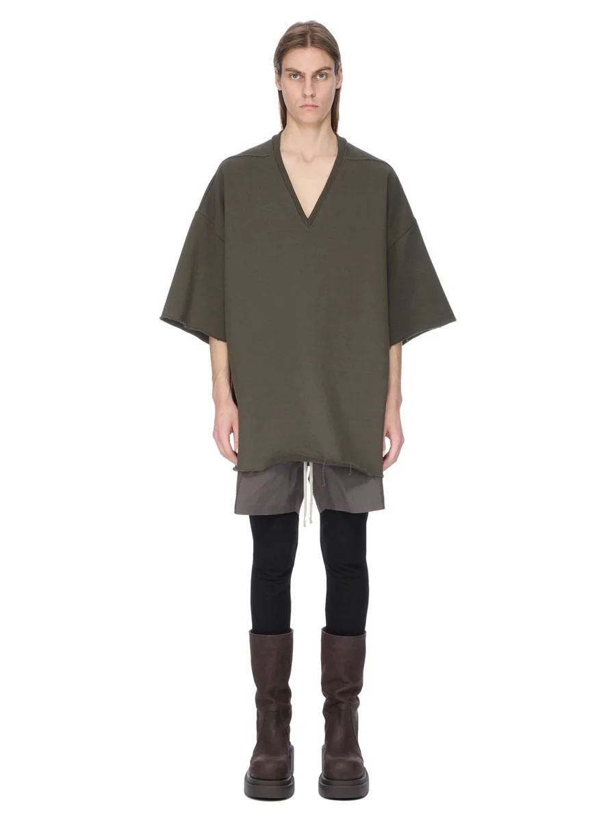 RICK OWENS FW25 CONCORDIANS V TOMMY T-SHIRT IN BOSCO COMPACT TERRY JERSEY